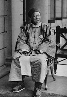 Li Hongzhang (15 February 1823 - 7 November 1901) was a Chinese politician, general and diplomat of the late Qing dynasty. He quelled several major rebellions and served in important positions in the Qing imperial court, including the Viceroy of Zhili, Huguang and Liangguang. Although he was best known in the West for his generally pro-modern stance and importance as a negotiator, Li antagonised the British with his support of Russia as a foil against Japanese expansionism in Manchuria and fell from favour with the Chinese after their defeat in the First Sino-Japanese War.