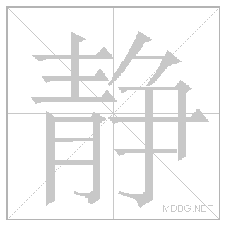 | 静 | jìng | jeeng | 4 | 青 (blue/green) + 争 (contend) → quiet | 静 link | ||||||