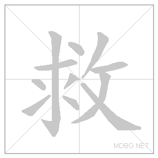 | 救 | jiù | djee:ooh | 4 | 求 (seek) + 攵 (tap) → rescue | 救 link | ||||||