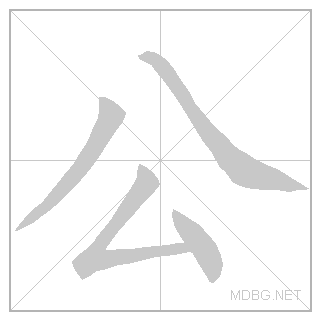 | 公 | gōng | gawng | 1 | 八 (split) + 厶 (private) → public | 公 link | ||||||