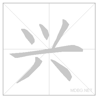 | 兴 | xīng | tsing | 1 | 八 (split) + 小 (small) → flourish | 兴 link | ||||||