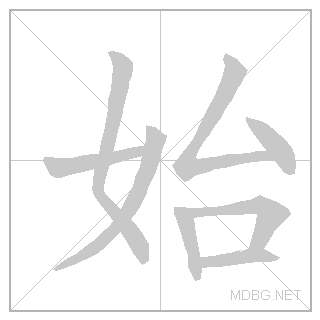 | 始 | shǐ | sheuh | 3 | 女 (woman) + 台 (platform) → begin | 始 link | ||||||