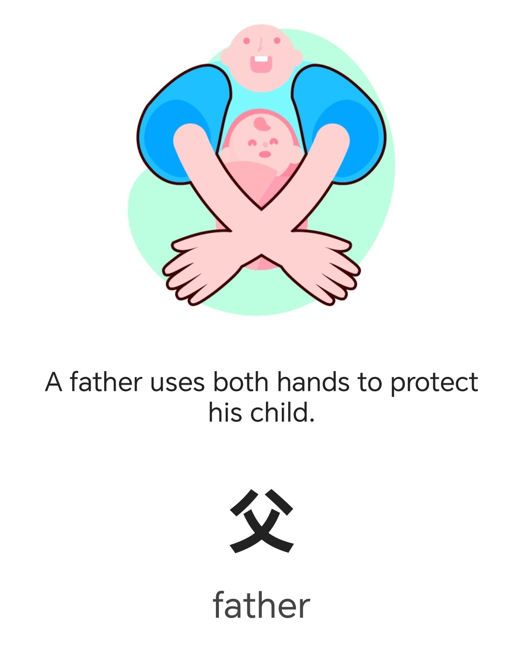 | 父 (father) + 巴 (cling) → dad | 父 (semantic) | 巴 (phonetic) | phonetic from 巴 | ||||||||