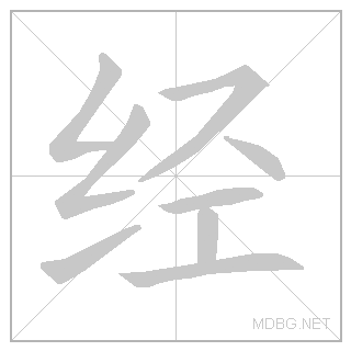 | 经 | jīng | jeeng | 1 | 纟 (silk) + 巠 (warp) → pass through | 经 link | ||||||