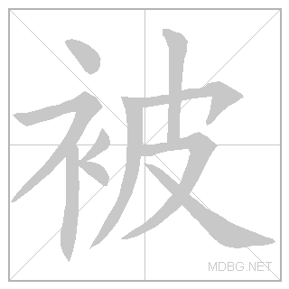 | 被 | bèi | bay | 4 | 衤 (clothes) + 皮 (skin) → by; quilt | 被 link | ||||||