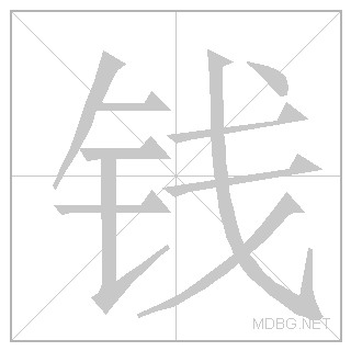 | 钅 (metal) + 戋 (narrow) → money | 钅 (semantic) | 戋 (phonetic) | phonetic from 戋 | ||||||||