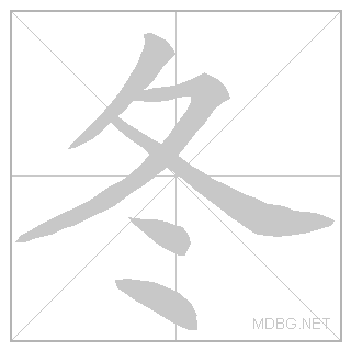 | top‑bottom; noun | 冬 (夂 winter radical + 冫 ice) + 天 (big + one) | ||||||||||