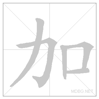 | 加 | jiā | djee:ah | 1 | 力 (strength) + 口 (mouth) → add | 加 link | ||||||