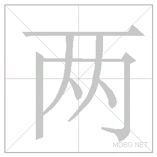 | 两 | liǎng | lee:ahng | 3 | 一 (horizontal) + 冂 (open box) + 丨 (vertical) → two; both | 两 link | ||||||