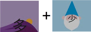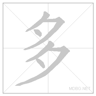 | left‑right; question | 多 (夕 evening + 夕 evening) + 少 (小 small + 丿 slash) | ||||||||||