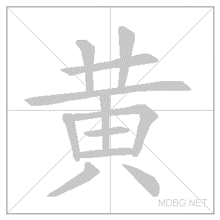| left‑right; adjective | 黄 (黄 yellow radical) + 色 (人 person + 巴 wrap) | ||||||||||