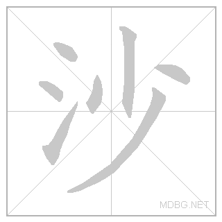 | left‑right; noun | 沙 (氵 water radical + 少 few) + 拉 (hand + stand) | ||||||||||
