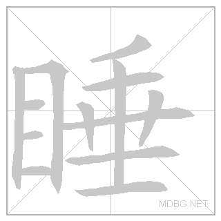 | left‑right; verb‑object | 睡 (目 eye + 垂 droop) + 觉 (见 see + 冖 cover) | ||||||||||