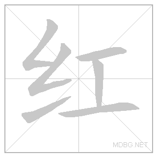 | left‑right; noun | 红 (silk + work) + 茶 (艹 grass + 人 person + 木 tree) | ||||||||||