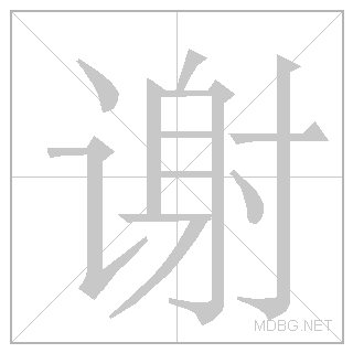 | left‑right; polite phrase | 谢 (讠speech + 射 shoot) + 谢 (repeat) | ||||||||||
