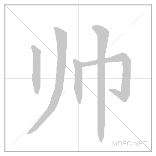 | 帅 | shuài | shoo:eye | 4 | ⺈ (knife) + 巾 (cloth) → handsome; commander | 帅 link | ||||||