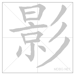 | 影 | yǐng | eeng | 3 | 景 (scenery) + 彡 (shimmer) → shadow | 影 link | ||||||