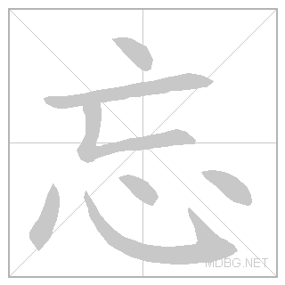 | 忘 | wàng | wahng | 4 | 亡 (lose) + 心 (heart) → forget | 忘 link | ||||||