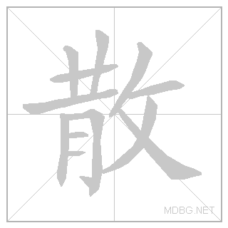 | 散 | sàn | san | 4 | 攵 (tap) + 𦰩 (scatter) → scatter | 散 link | ||||||