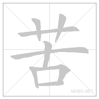 艹 (grass) + 古 (old) → bitter |