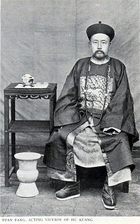 Duanfang (20 April 1861 - 27 November 1911) was a Manchu politician, educator and collector who lived in the late Qing dynasty. He was a member of the Tohoro clan and the Plain White Banner of the Eight Banners. On May 18, 1911, Duanfang was appointed as the Chuanhan and Yuehan railroad’s superintendent. The Railway Protection Movement erupted over the nationalization of local railroad construction and their transfer to foreign banks. Duanfang arrived in Hankou on July 14. On September 7, due to a murder in Chengdu, the situation of Sichuan spiraled out of control, eventually resulting in the Xinhai Revolution. On September 10, the Qing imperial court removed Zhao Erfeng as governor of Sichuan, and Duanfang became the acting governor, he led the Hubei New Army into Sichuan. The new army mutinied on November 27, and officer Liu Yifeng killed Duanfang, as part of a general wave of anti Manchu violence during the revolution.