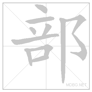 | 咅 (sound) + 阝 (city) → part; section | 阝 (semantic) | 咅 (phonetic) | phonetic from 咅 | ||||||||