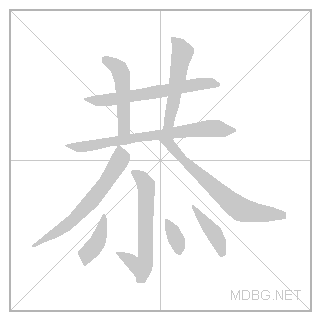 | 恭 | gōng | gawng | 1 | 共 (together) + 心 (heart) → respectful | 恭 link | ||||||