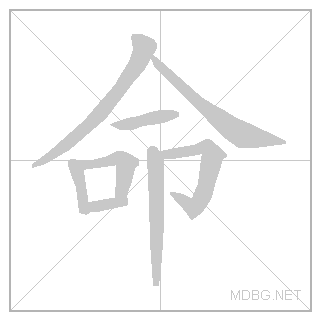 | 亼 (gather) + 口 (mouth) + ㇏ (bend) → life; fate | 口 (mouth) | 令 (lìng) | 令 is phonetic; 口 adds “speech/command” | ||||||||