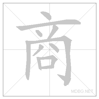 | left‑right; noun | 商 (亠 cover + 冏 bright) + 店 (shelter + occupy) | ||||||||||