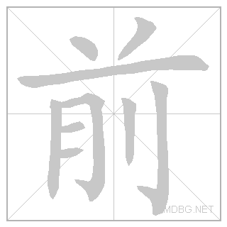 | 前 | qián | tchee:en | 2 | 止 (foot) + 月 (flesh) + 刀 (knife) → front | 前 link | ||||||