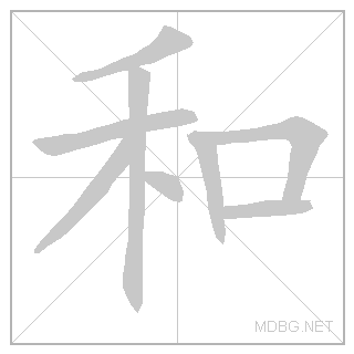 | 和 | hè / huó | heuh / heu:awh | 2 | 禾 (grain) + 口 (mouth) → harmony; and | 和 link | ||||||