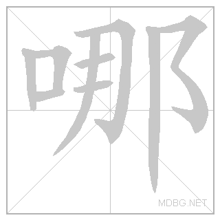 | 口 (mouth) + 那 (that) → which | 口 (semantic) | 那 (phonetic) | phonetic from 那 | ||||||||