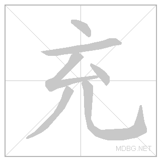| 充 | chōng | tchawng | 1 | 亠 (lid) + 儿 (legs) → fill; charge | 充 link | ||||||