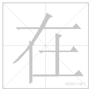 | [HSK 1] - Usually at, but also used to demonstrate an action in the present. This character is a combination of 'talent' (cái) and 'soil'. 'Talent' indicates the pronunciation; 'soil' indicates the meaning . Originally this character meant 'to exist', but it has been extended to mean 'at', 'in' or 'on'. | |||||||||||