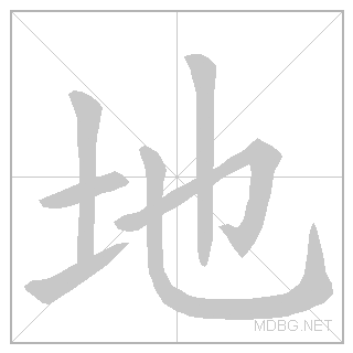 | 地 | dì/de | dee/duh | 4 | 土 (earth) + 也 (also) → ground | 地 link | ||||||
