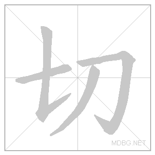 | 切 | qiē | tchee:eh | 1 | 七 (seven) + 刀 (knife) → cut | 切 link | ||||||