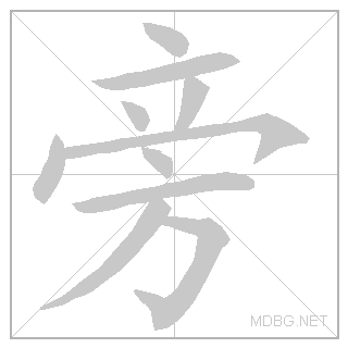 | 旁 | páng | pahng | 2 | 方 (square) + 亠 (lid) + 冖 (cover) + 口 (mouth) → beside | 旁 link | ||||||