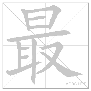 | 最 | zuì | dyoo:eh | 4 | 日 (sun) + 取 (take) → most | 最 link | ||||||