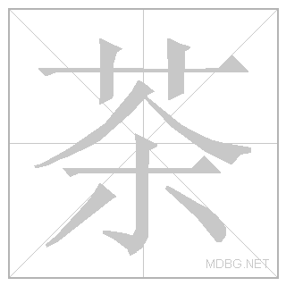 [HSK 1] - This character is a combination of 'grass', a component that resembles 'person', and 'tree', and can be translated as 'tea tree'. The original form of this character meant 'bitter herb'.