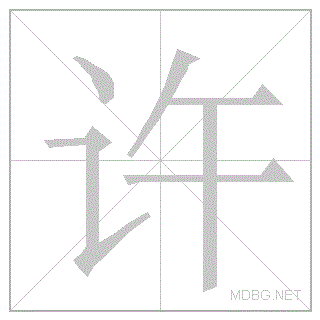 | 许 | xǔ | tschuh | 3 | 讠 (speech) + 午 (noon) → allow; permit | 许 link | ||||||