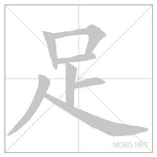 | 足 | zú | zoh:uh | 2 | 口 (mouth) + 止 (foot) → foot | 足 link | ||||||