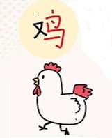 | 鸡 | jī | djee | 1 | 又 (hand) + 鸡 (phonetic bird) → chicken | 鸡 link | ||||||