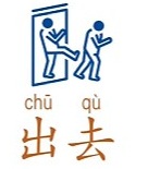 | 出去 | chūqù | too-chee:oo | 1+4 | 上 (up) + 去 (土 earth + 厶 private) | 出去 link | ||||||