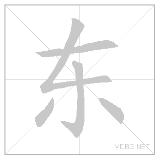 | 东 | dōng | dawng | 1 | 一 (horizontal) + 木 (tree) → east | 东 link | ||||||