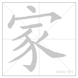 | left‑right; noun | 家 (roof + pig) + 庭 (广 shelter radical + 廷 court) | ||||||||||
