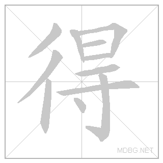 | 得到 | dédào | duh-dowe | 2+4 | 很 (step + stopping) + 近 (辶 movement radical + 斤 axe) | 得到 link | ||||||
