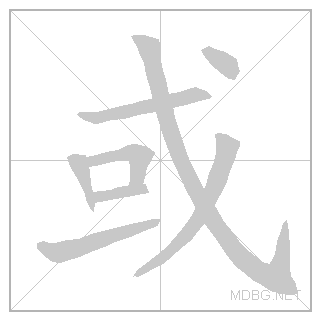 | left‑right; conjunction | 或 (戈 spear + 口 mouth) + 者 (耂 old + 日 sun) | ||||||||||