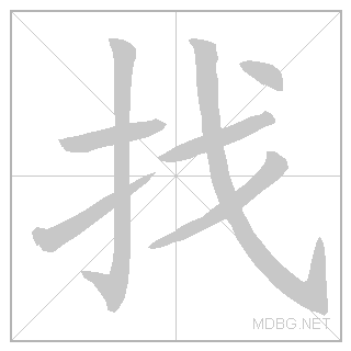 | left‑right; verb | 找 (扌 hand radical + 戈 spear) + 到 (至 arrive + 刂 knife) | ||||||||||