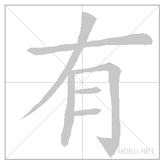 | 有钱 | yǒuqián | yo-tchee:an | 3+2 | 有 (手 hand + 月 body) + 名 (夕 evening + 口 mouth) | 有钱 link | ||||||