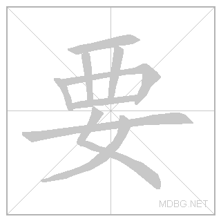 | left‑right; conjunction | 要 (西 west + 女 woman) + 是 (日 sun + 正 correct) | ||||||||||